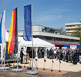 On the 6th of May the ground-breaking of the new building CENEM will based in was celebrated. The interdisciplinary center for nanostructured films as it is called will be home to over 200 scientists from different fields, strengthening the collaborative efforts in Erlangen. The building which is scheduled to be completed in 2018 has a budget of over 40 mio. € and will house several first-class laboratories for electron microscopy. Additionally the Optical Imaging Center Erlangen (OICE) will be located in the building, complementing CENEM by providing access to advanced light microscopy. CENEM is very much looking forward to its new home and new collaborations!