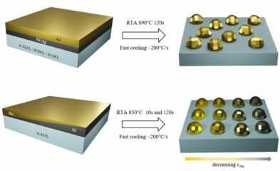 Regarding the thermal stability of alloy films, they found, that the SSD kinetics of the low-misfit AuAg system continuously changes with the Au concentration and can be perfectly described by composition dependent hole growth as reflected by the Mullins’ coefficient, while the high-misfit AuNi system resembles this behaviour only during early stages of SSD and shows a strong deviation of this behavior. The deviation from the Mullins coefficient indicates a shift in the prevailing mechanism, suggesting that this accelerated SSD occurs at compositions where the annealing temperature (T) approaches the melting temperature (Tm), i.e. liquidus line. Indeed, the reduced temperature (T/ Tm) exhibits its maximum within the compositional range where accelerated SSD is prominent.