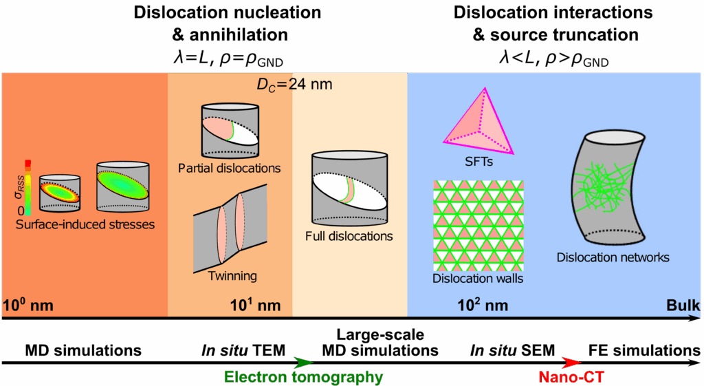 The result of this work has been recently published in Communications Materials and is the fruit of a strong and long-standing international collaboration involving, among others, Prof. Spiecker and Dr. Przybilla from Friedrich-Alexander-Universität Erlangen-Nürnberg (DE) at IMN/CENEM, Prof. Bitzek from Max-Planck-Institute for Sutainable Materials (DE), Prof. Sandfeld and Dr. Xie from RWTH Aachen University (DE), Dr. Prakash from Technische Universität Bergakademie Freiberg (DE), Dr. Bale and Dr. Kelly from Carl Zeiss X-ray Microscopy (USA), and Dr. Guénolé from the French National Centre for Scientific Research (FR).